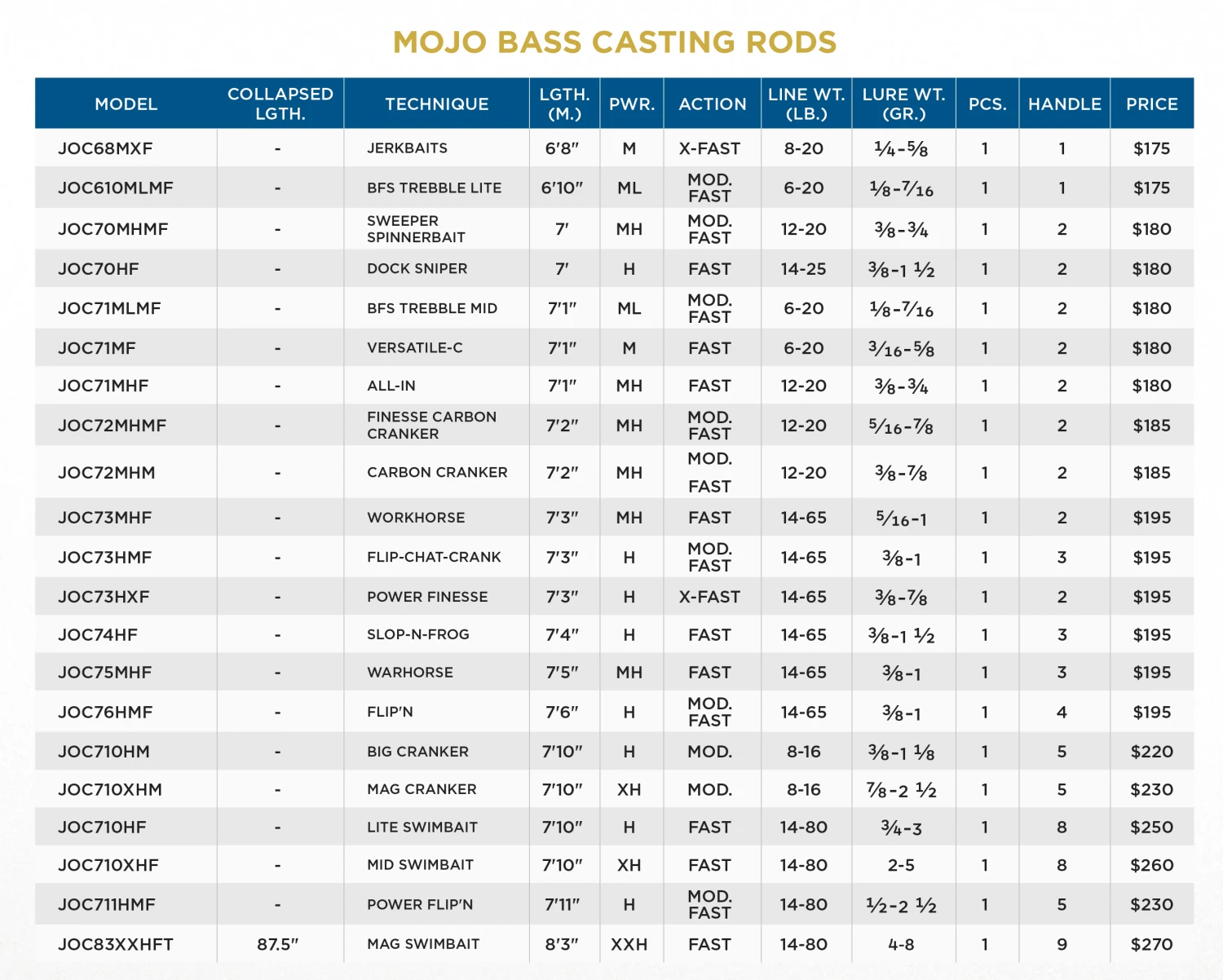 - MOJO BASS TRIGON CASTING RODS FEATURE PROPRIETARY ST. CROIX ROD TECHNOLOGIES IPC, and FRS.