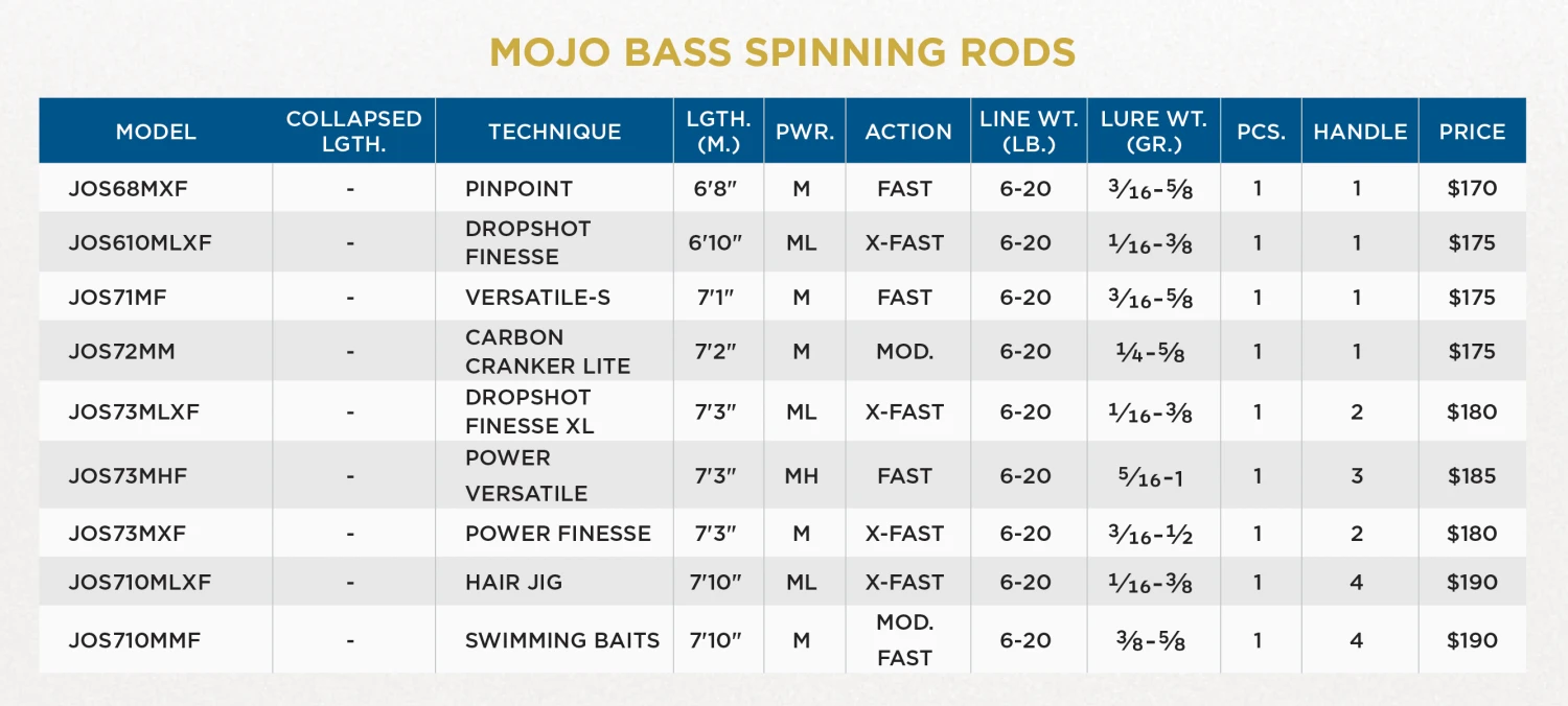 - MOJO BASS TRIGON SPINNING RODS FEATURE PROPRIETARY ST. CROIX ROD TECHNOLOGIES IPC, and FRS.