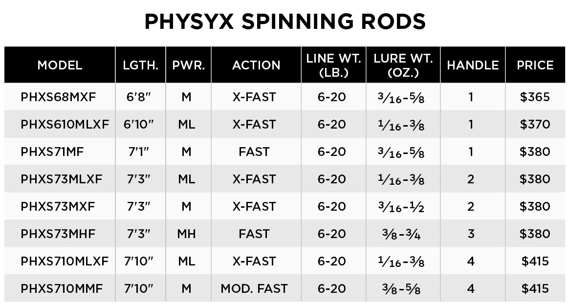 Handcrafted in Park Falls, WI USA. Physyx casting rods feature St. Croix Rod technologies IPC, ART, TET, FRS, and carry a 15 Year Transferrable Warranty.
