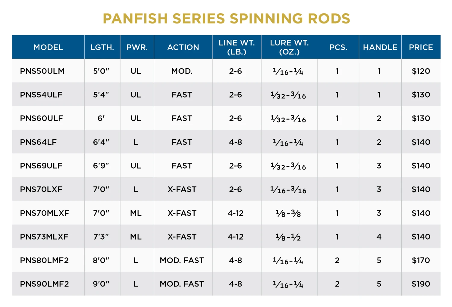 St. Croix’s panfish series is built upon heritage and angler feedback. Technique specific handles and stain resistant reel seats compliment rod models designed for improved balance and the increased sensitivity. Panfish series delivers a harmonious balance between power and action demanded by panfish anglers at an incredible value!