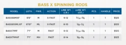| Model TD Code | Type | Length | Power | Action | Line Weight | Lure Weight | Rod Weight | Handle | |